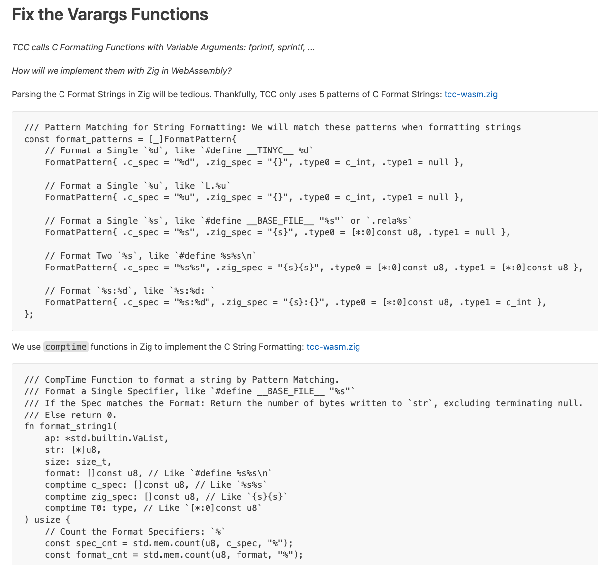 Implementing printf() in #ZigLang with Pattern Matching ... So TCC Compiler will run in #WebAssembly 🤔