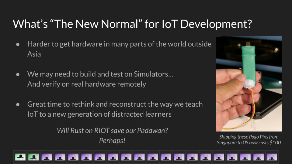 "The New Normal" for #IoT Development... Safer, Simpler #Embedded Programs with #RustLang on @RIOT_OS... Sep 15 at #RIOTSummit https://summit.riot-os.org/2020/