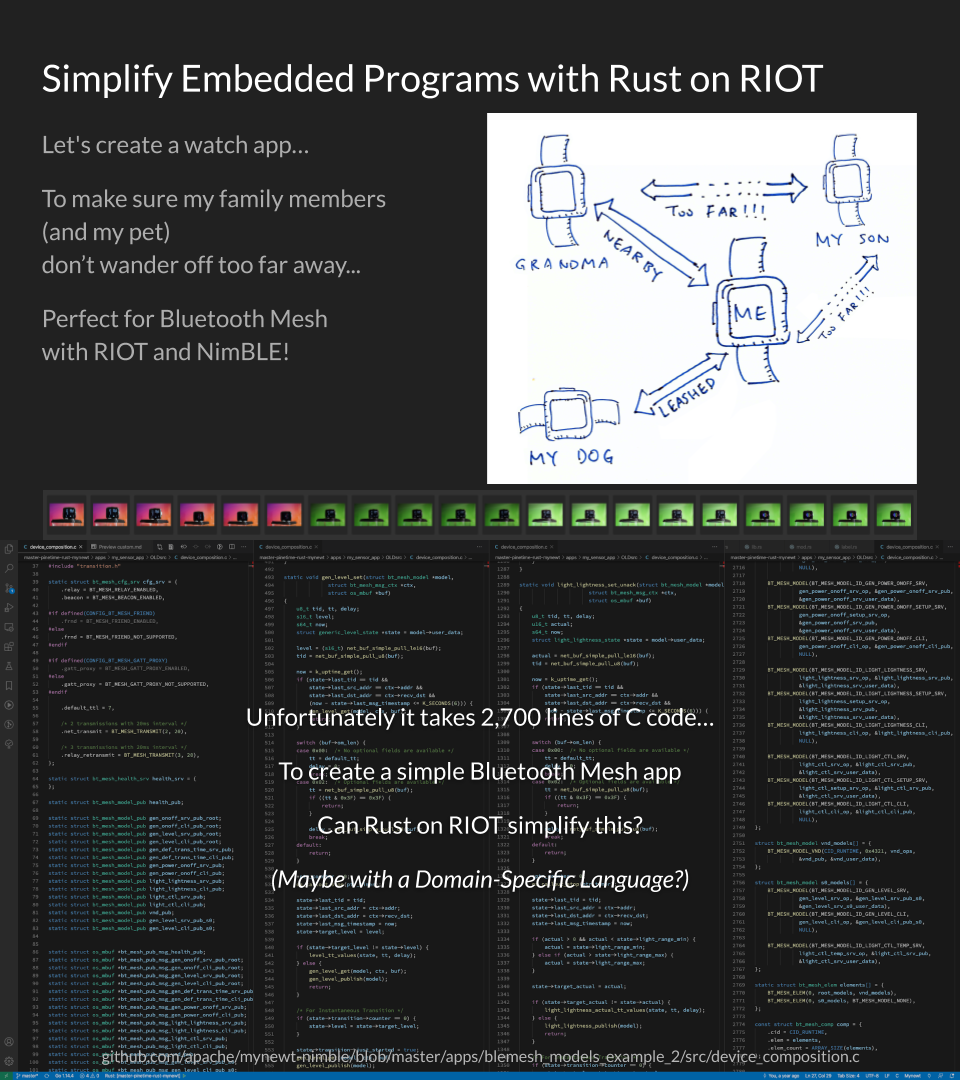 Tracking my (hypothetical) children and pets with #BluetoothMesh... Safer, Simpler #Embedded Programs with #RustLang on @RIOT_OS... Next Week (Sep 15) at #RIOTSummit https://summit.riot-os.org/2020/