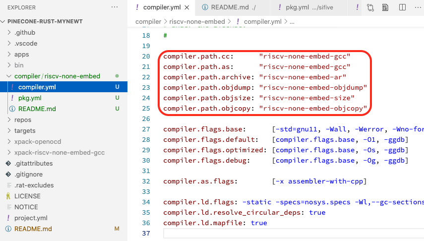 Tweaking #Mynewt to build #PineCone #BL602 #RISCV Firmware ... With "riscv-none-embed-gcc" instead of "riscv64-unknown-elf-gcc"