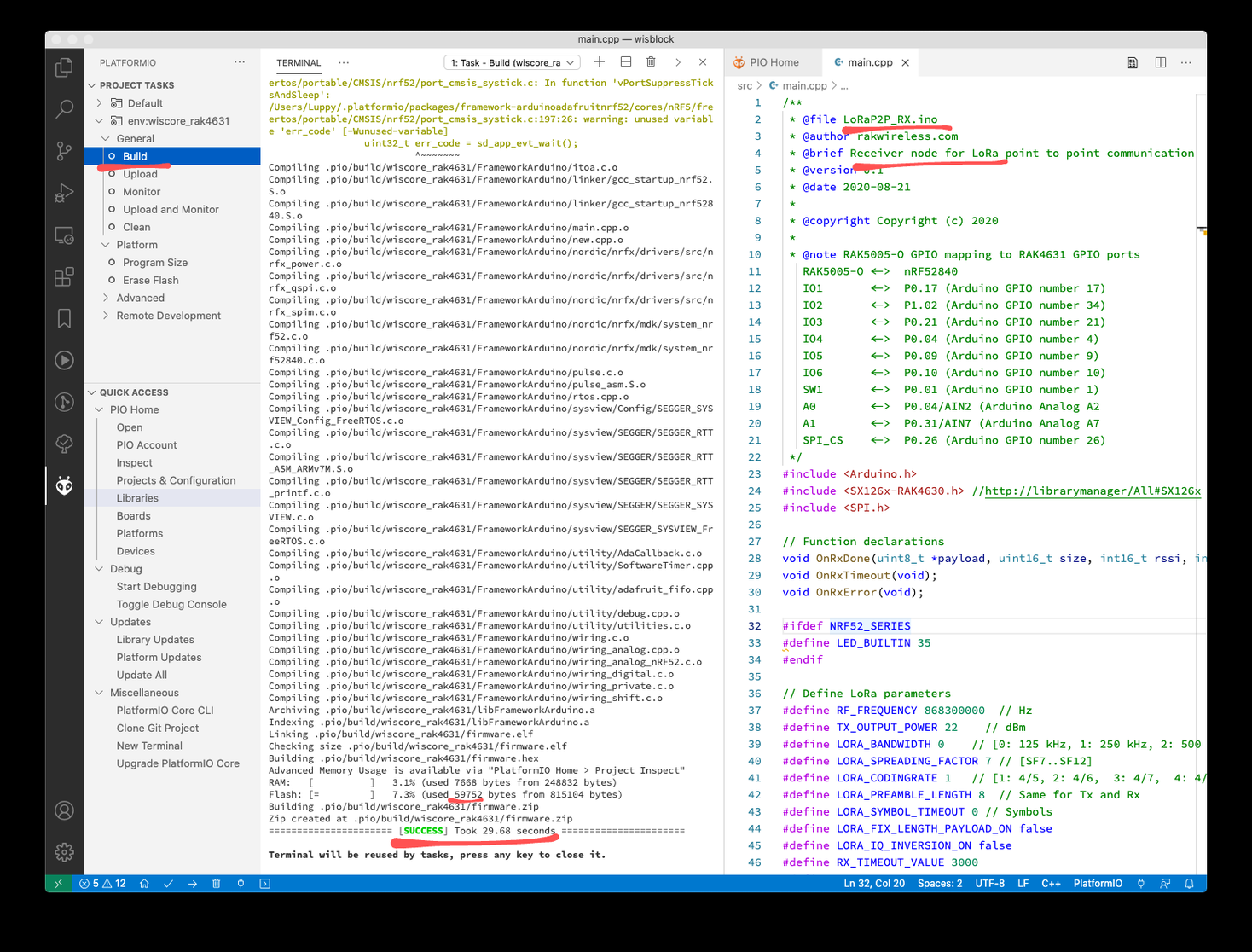 WisBlock #LoRa app by RAKwireless ... Built OK by PlatformIO ... So far so good! 👍