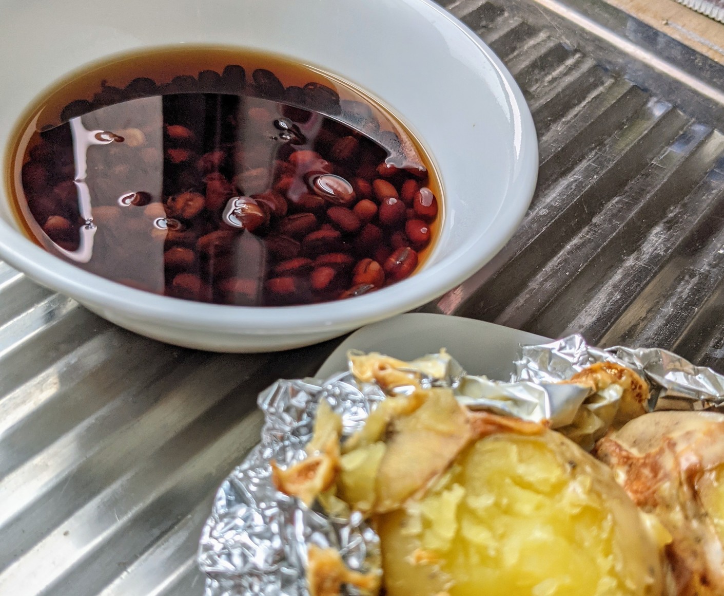 Red Bean Soup and Cheesy Spuds ... Yep both are undercooked 🤔