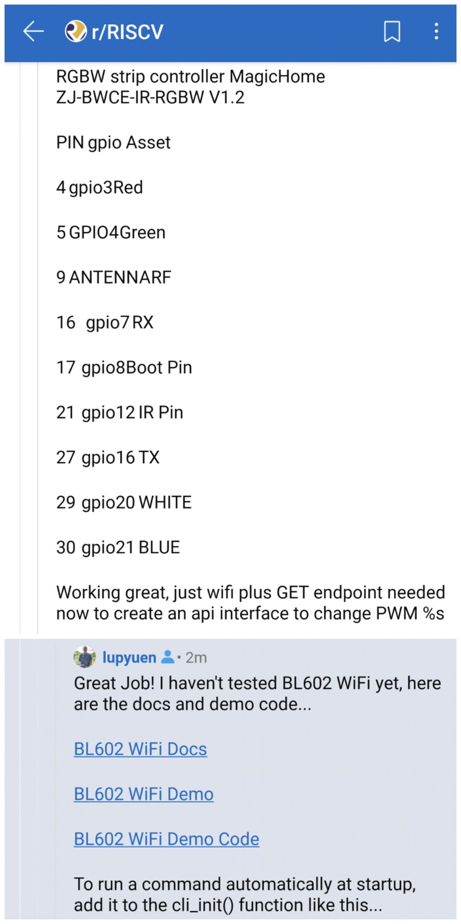 #BL602 #MagicHome Community has reverse engineered the GPIO Pin Assignment for the WiFi LED Controller ... So cool!