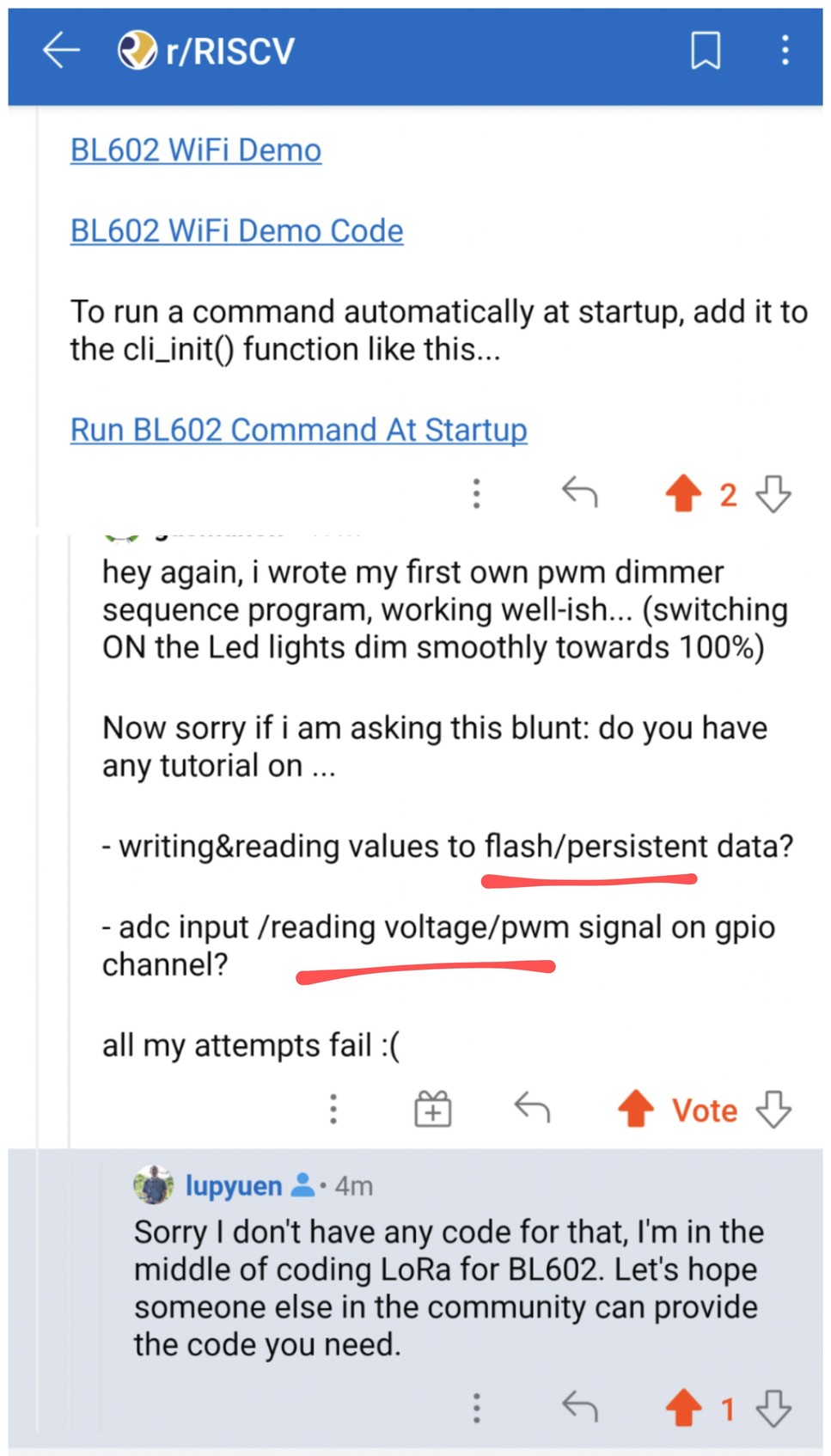 #BL602 #MagicHome Community needs help coding 1️⃣ Flash Storage 2️⃣ ADC Input ... Would you be able to help? 🙏
