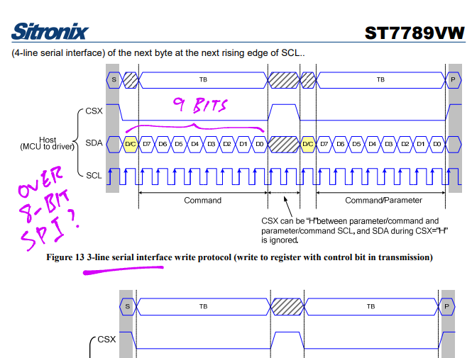 Anyone knows how to talk to ST7789 Display on 3-Wire (9-bit) Mode ... Over 8-bit SPI? Do we pack our bits into 9-byte chunks? (9 bits x 8) Thanks! 🙏