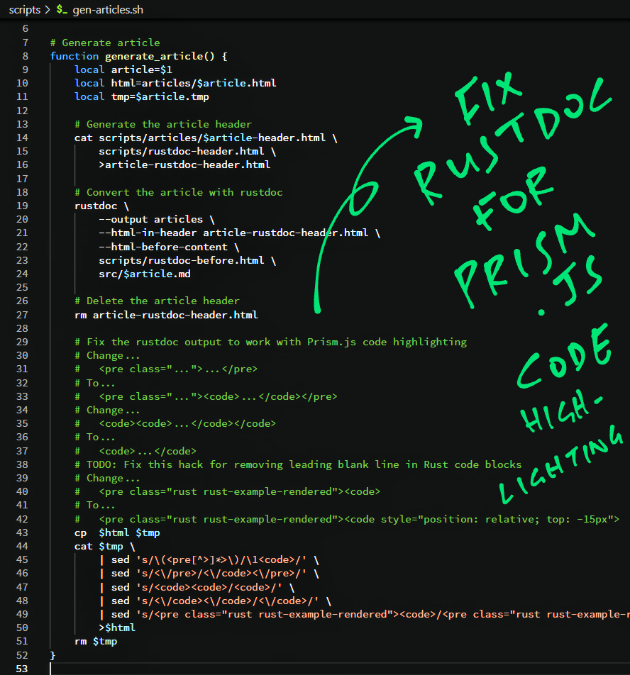 Not sure why my rustdoc articles stopped working with Prism.js ... But here's my hacky fix 🤔