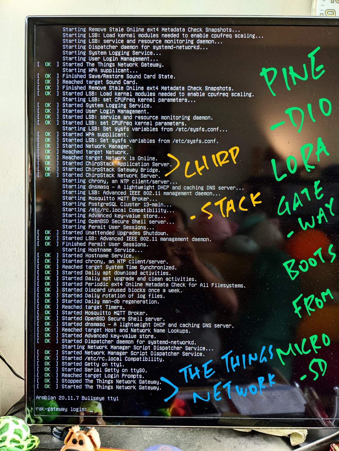 Flash @RTP's awesome all-in-one Armbian image to a microSD Card ... Boot it on #PineDio #LoRa Gateway ... ChirpStack and #TheThingsNetwork Packet Forwarder are up!