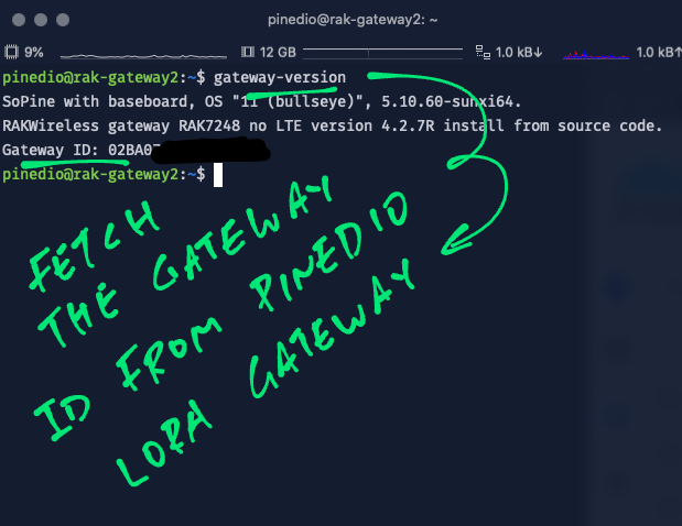 But first we run "gateway-version" to fetch the #LoRa Gateway ID from #PineDio Gateway