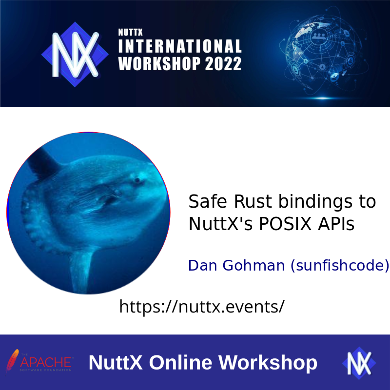#RustLang on #NuttX RTOS sounds super interesting! Join us this weekend at NuttX Online Workshop, Sep 24-25