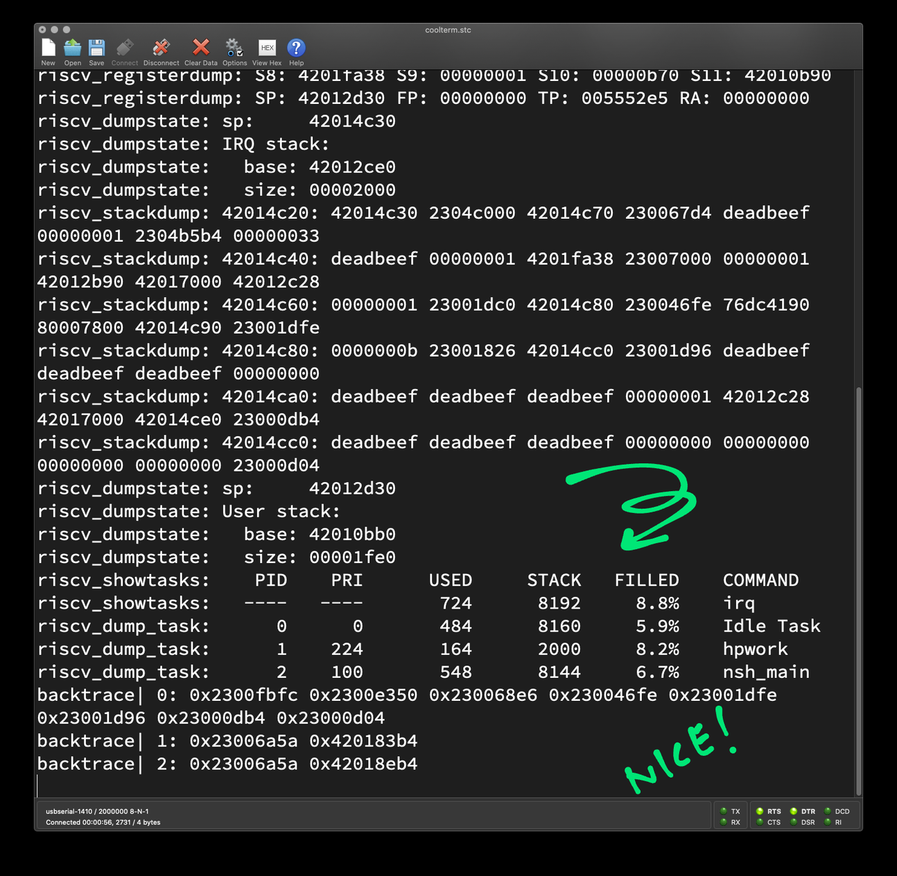 Improved Stack Trace for #NuttX on #BL602 ... Nice! 👍