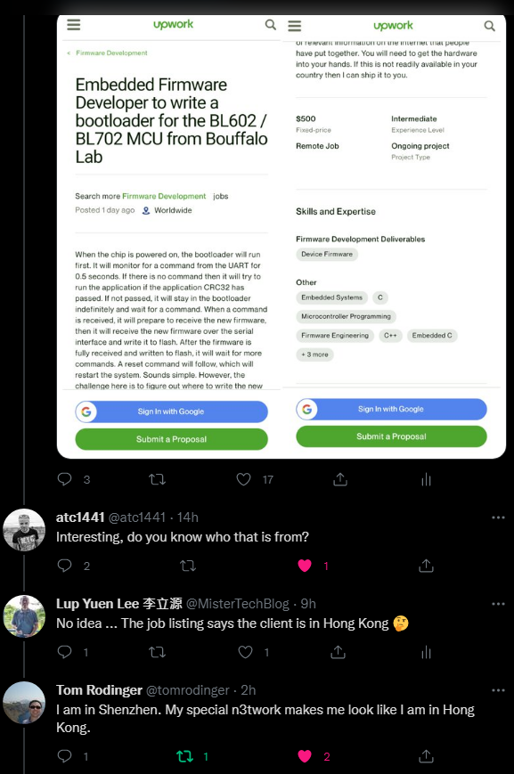 @gemlog I don't think Bouffalo Lab posted this ... The Job Listing says that the company is in Hong Kong ... Maybe Pine64? 😂