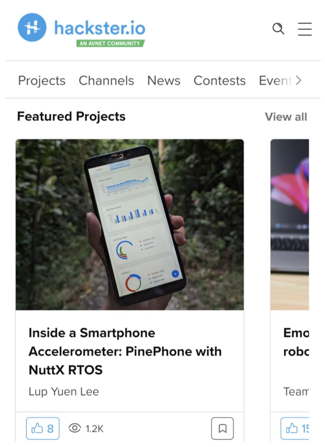 #NuttX RTOS for #PinePhone now featured on Hackster front page! 🎉