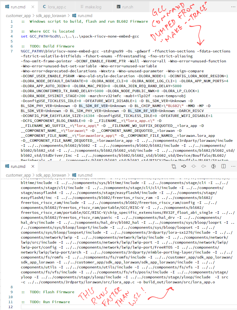 Dumping the #BL602 GCC Commands from "make" ... And running them under Windows CMD ... So much faster!