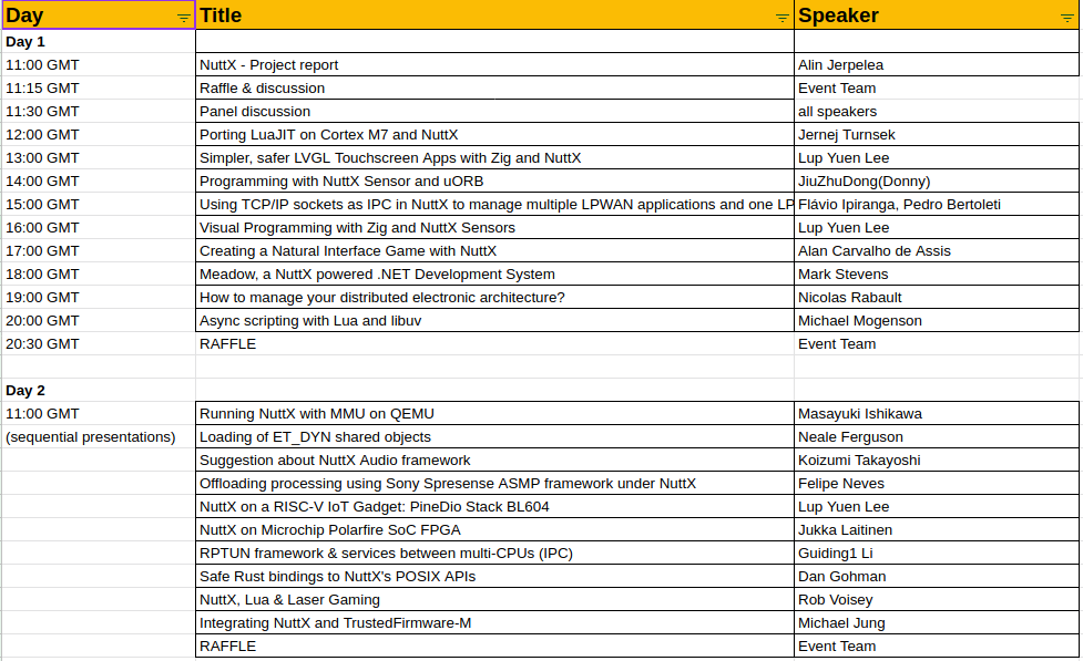 Live Stream on YouTube: nuttx.events/
