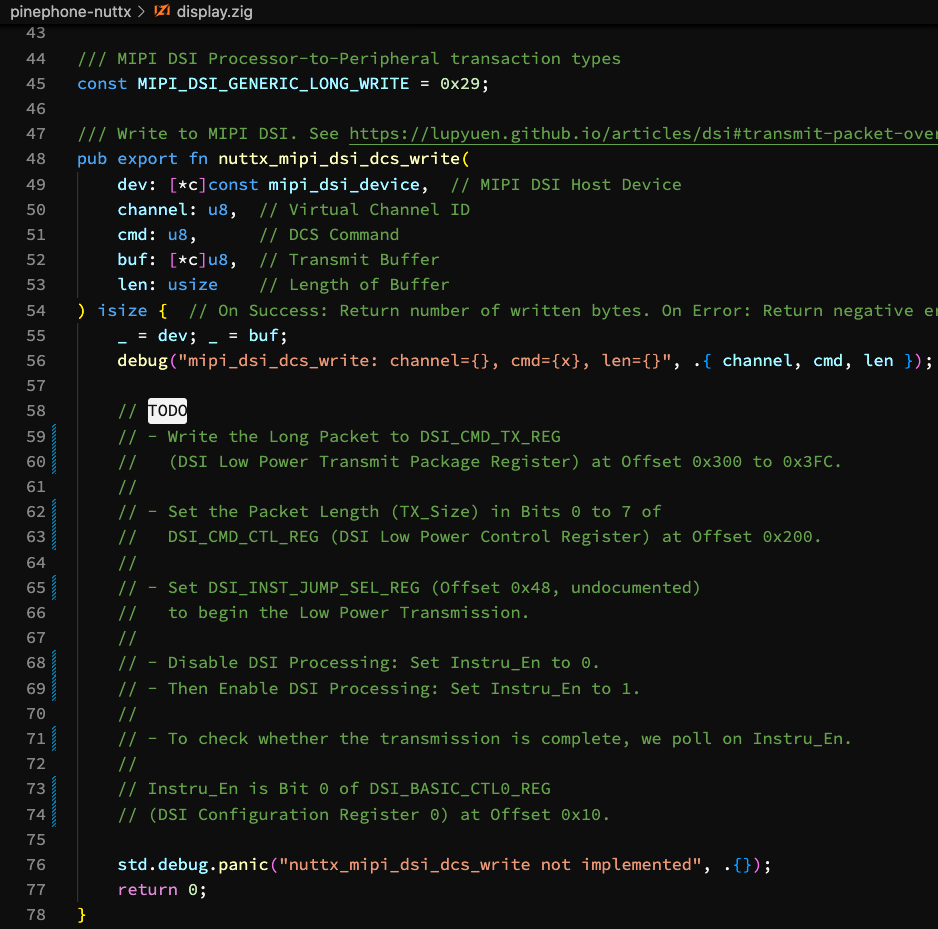 #ZigLang Driver for #PinePhone MIPI Display Serial Interface ... Now building a Quick Prototype on Apache #NuttX RTOS