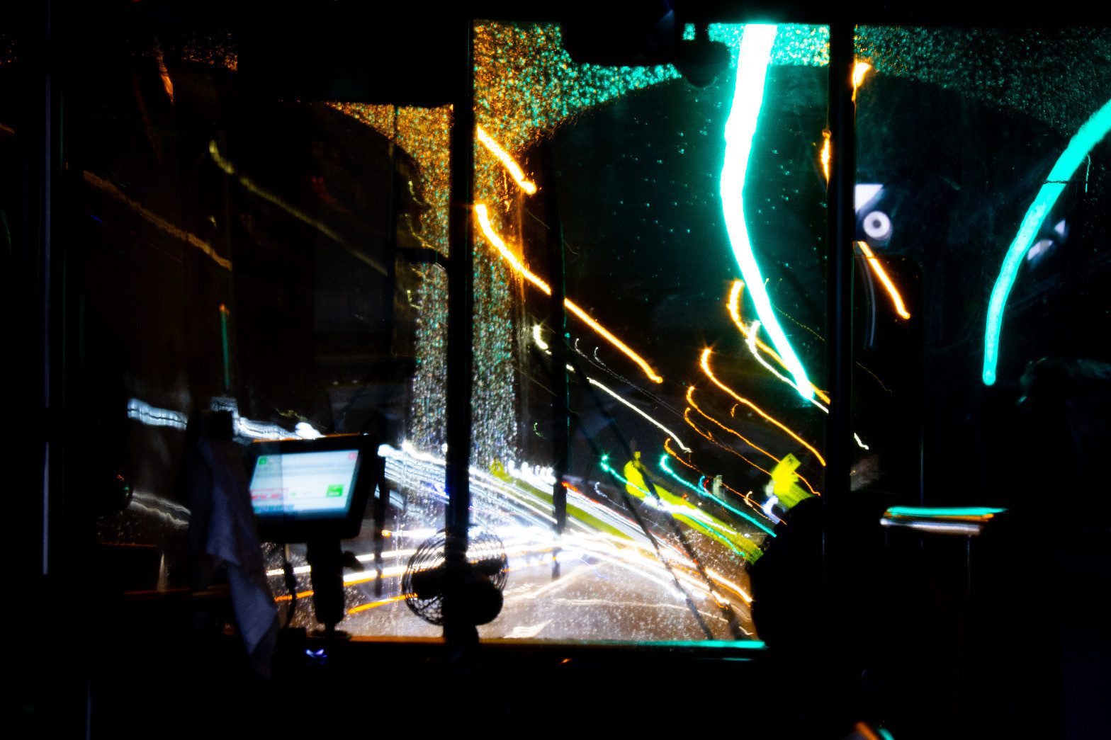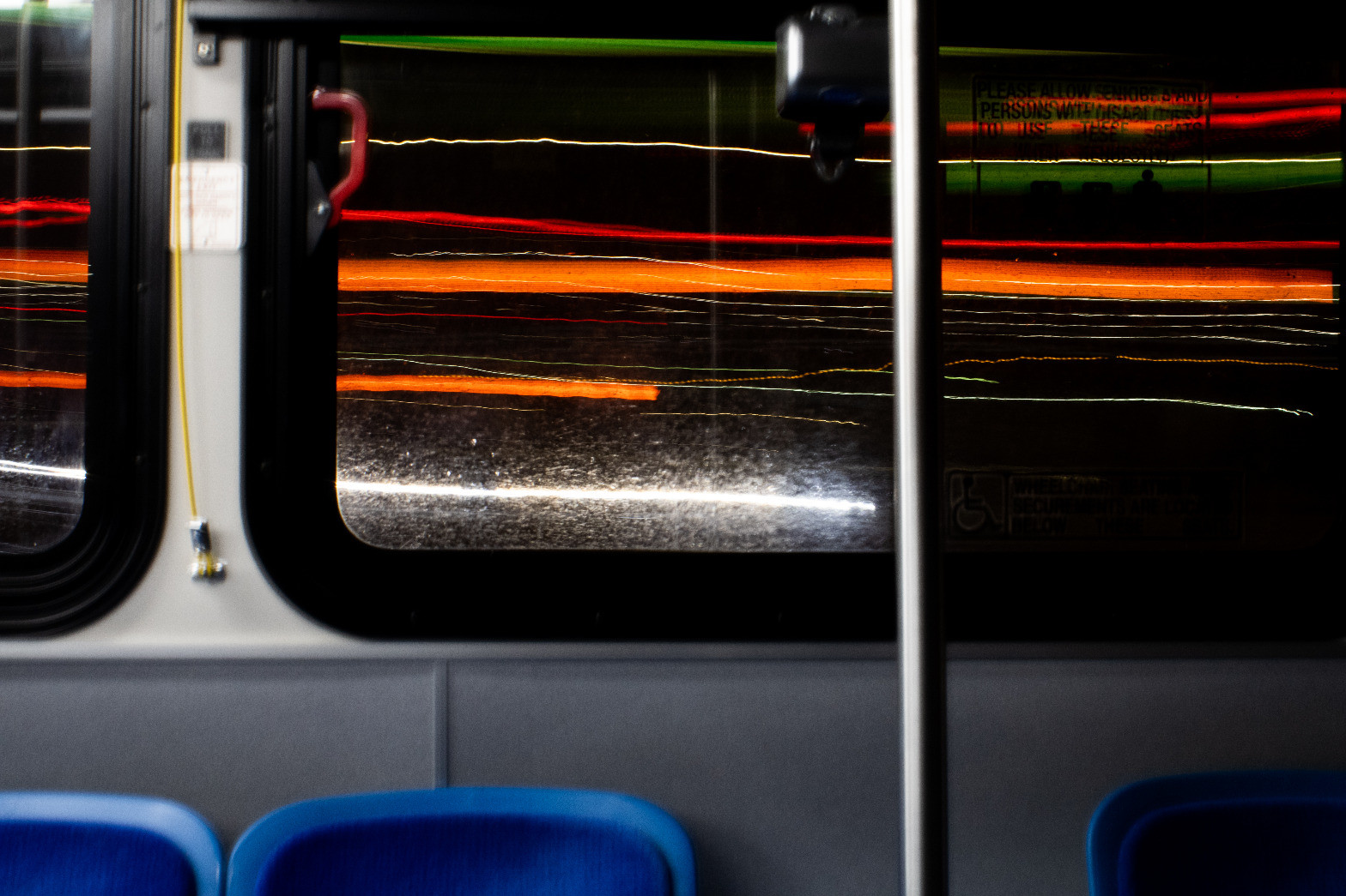 Shooting long exposure on a bus is interesting -- this is similar to how movies depict time traveling!