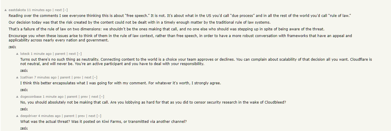 @ggf @josh It is completely frustrating how vague all of their statements about this is. They both allege the existence of clandestine legal processes that tacitly justify their lack of disclosure and provide no evidence of their existence or of the threat they are meant to address. They do this all the while pointing out that due process is not being served.