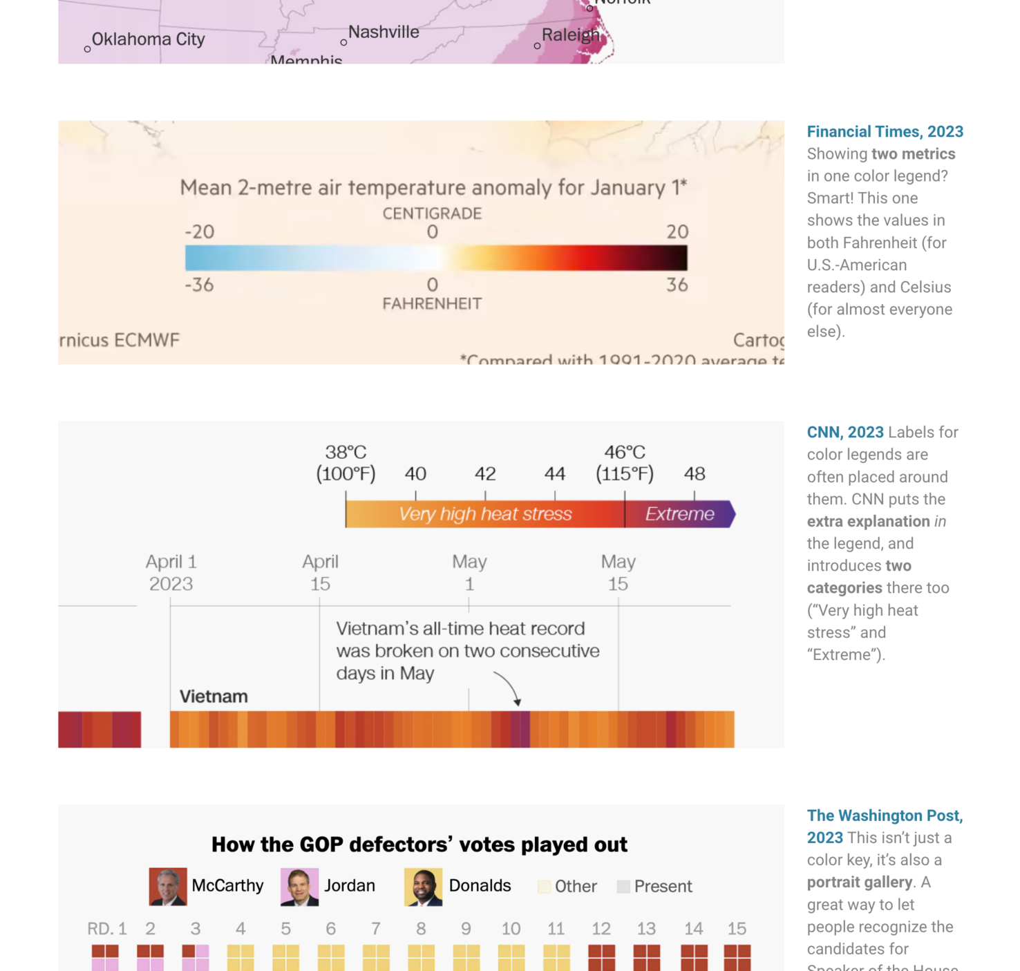 New blog post! Our author @lisacmuth shares tricks on how to create more useful, less confusing color legends for your charts and maps. Also included: A big, annotated collection of smart color keys.