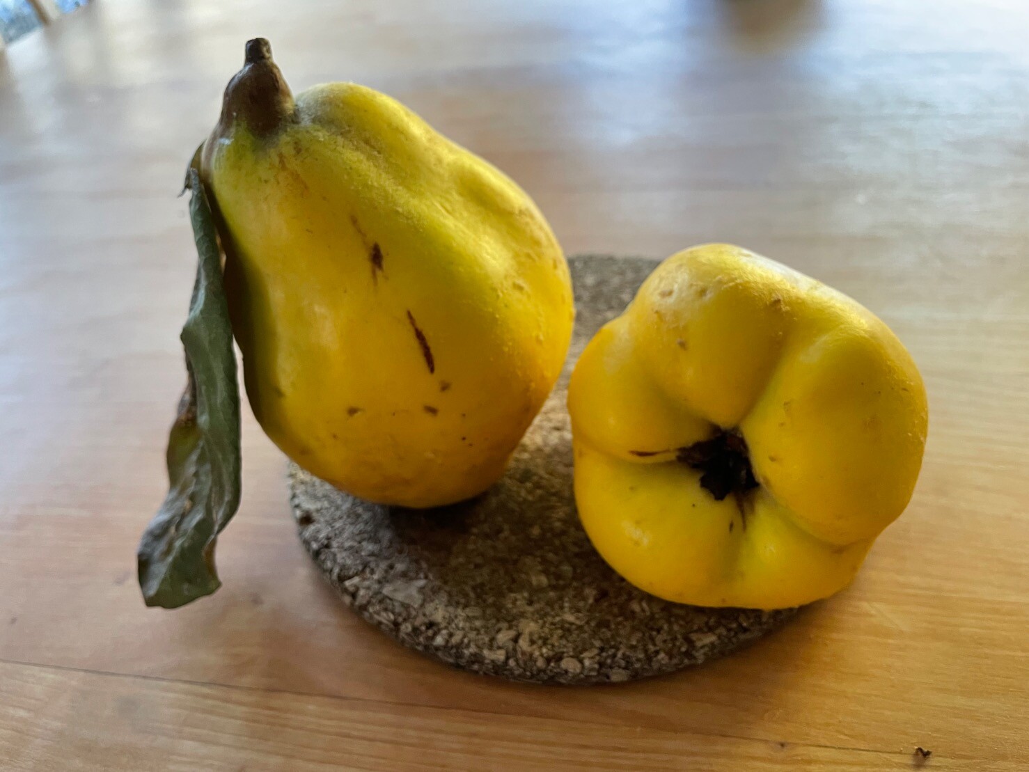买东西时店家送了几个榅桲,是她自己园子里采的。榅桲我最早是在英文版的一千零一夜里看到的,所以印象里是土耳其的物产,现在才知道它的原生地是中亚和高加索地区。榅桲的香气很难描述,像是香草加了木香和果香的混合香,摆在桌上和摆佛手的用途有些类似。但我更实际,一定要尝试一下用它做传统的果冻,果酱之类,也有人用它做成果泥,冷藏后就像是山楂糕。榅桲生吃极酸涩,哪怕是很成熟的果实也如此,但经过烤或煮后,它像是变了身,果肉会慢慢呈现出一种粉色,加了糖之后的酸甜与其自身的果香一起,成品令人意外。我做了果冻,搭配奶酪很好。