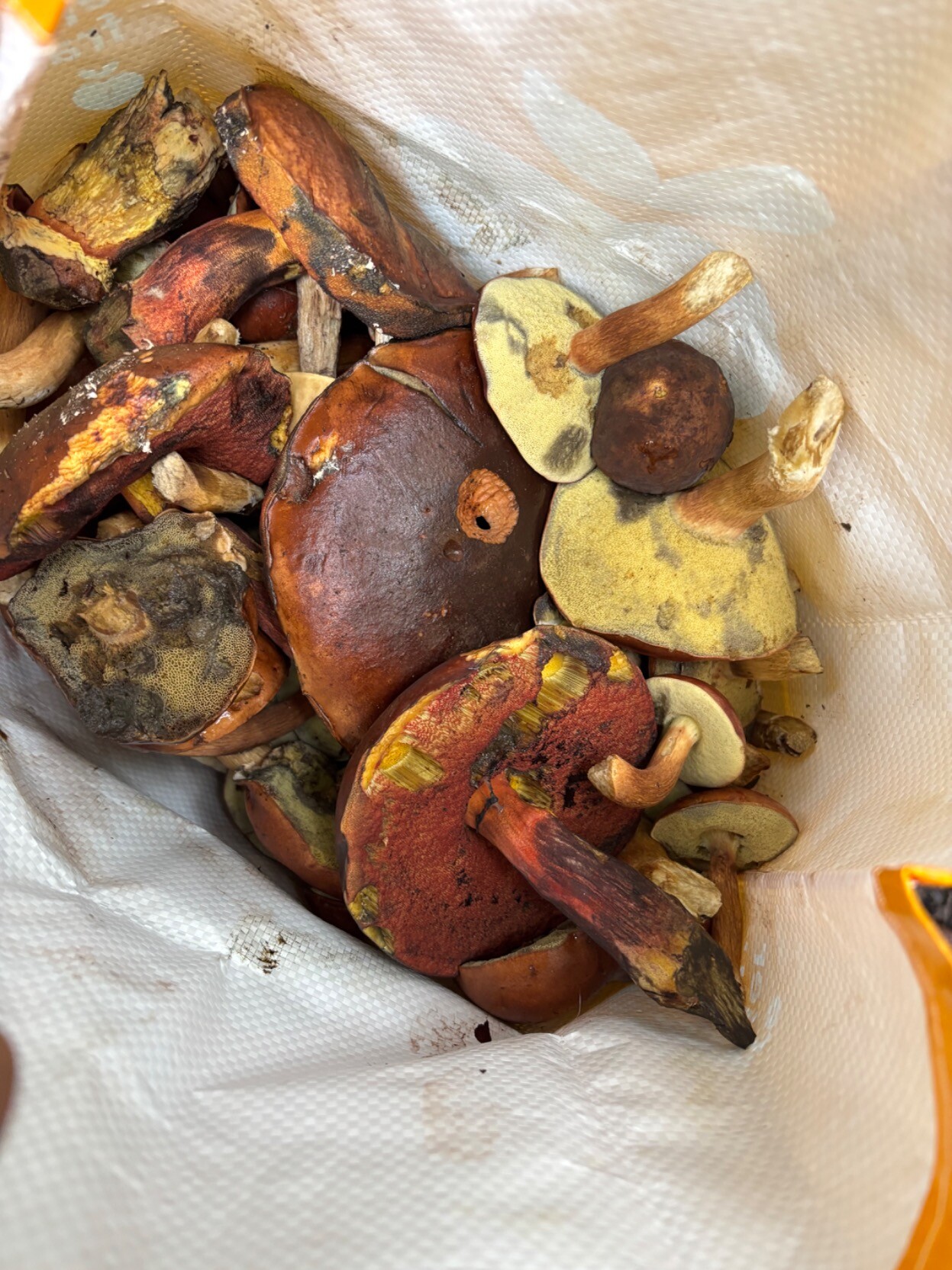 今天采蘑菇结果!!今年牛肝菌真的好多,我们走在森林路上随随便便就在路边采了这么多,路上遇到有人采了很好吃的那种牛肝菌随便扔在路边被自行车压烂了,气得骂了半天哈哈