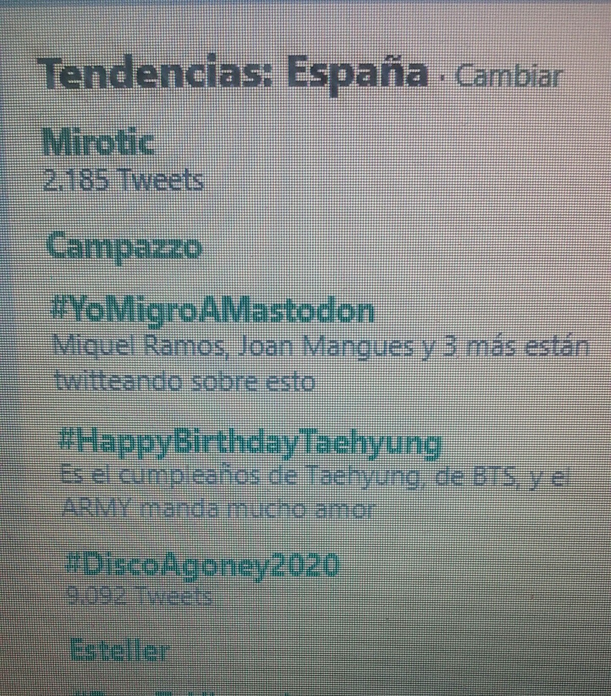 La gente ha empezado antes de tiempo y es TT en Twitter #YoMigroaMastodon