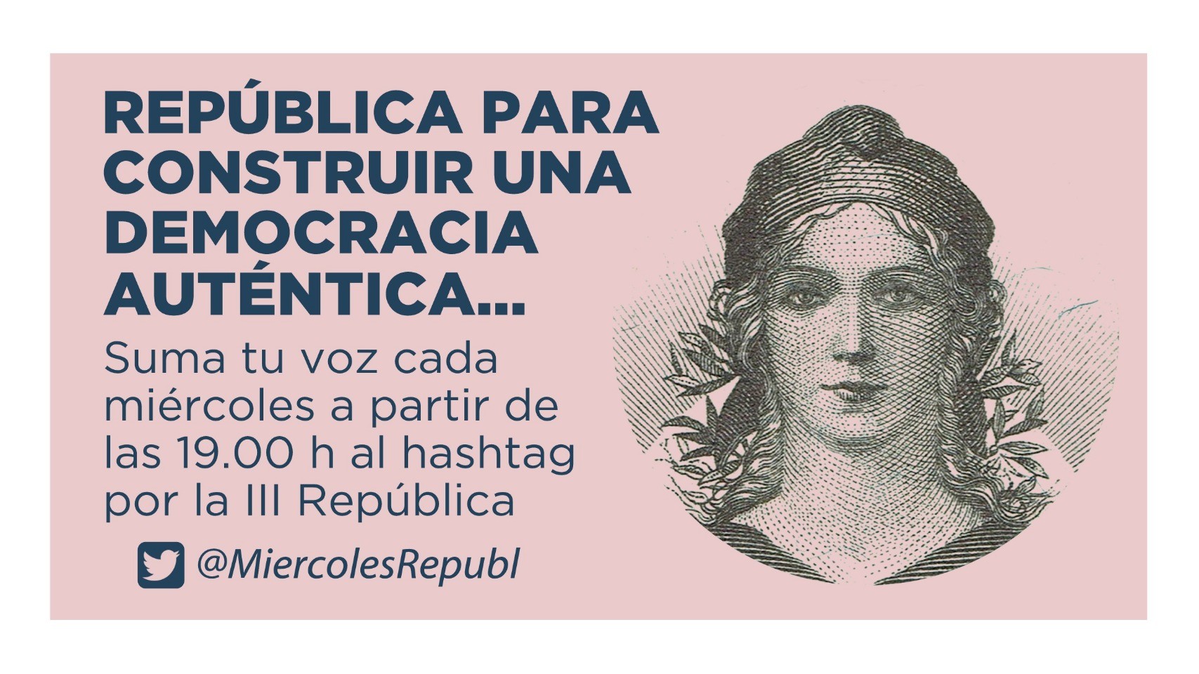 Todos los miércoles a partir de las 19.00 h (18.00 h en Canarias) tuiteamos por la III República con el hashtag de https://twitter.com/MiercolesRepubl