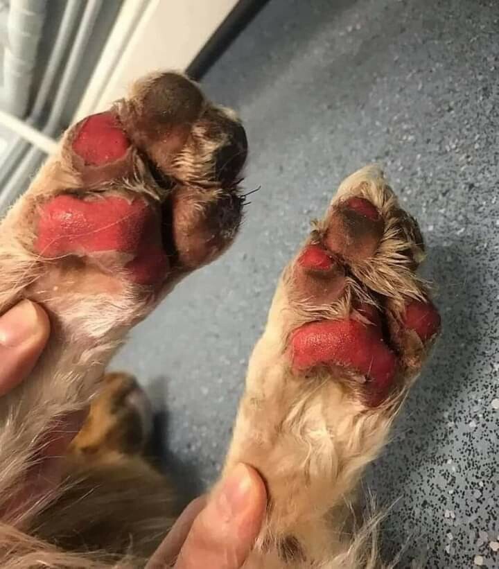NO a las caminatas con ellos en dias de calor. Tu usas zapatillas. ELLOS NO. Difundamos para concientizar x favor.😭😭😭
