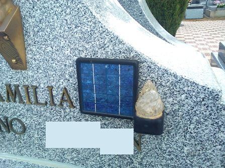 Muerte sostenible: una pequeña placa solar que alimenta la bombilla que ilumina la lápida durante la noche.