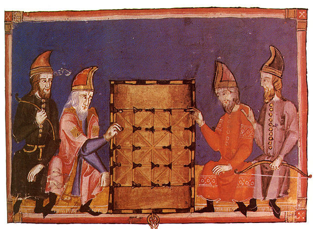 *un juglar procede a desenvolver un pergamino tras un arpegio de badurria