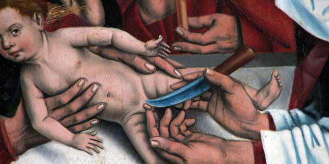 prepucio de Jesús y la piedra sobre el que cayó en la circuncisión. Prepucios se han llegado a contabilizar hasta 12 en toda Europa. El más famoso, al parecer le fue entregado por un ángel a Carlomagno.