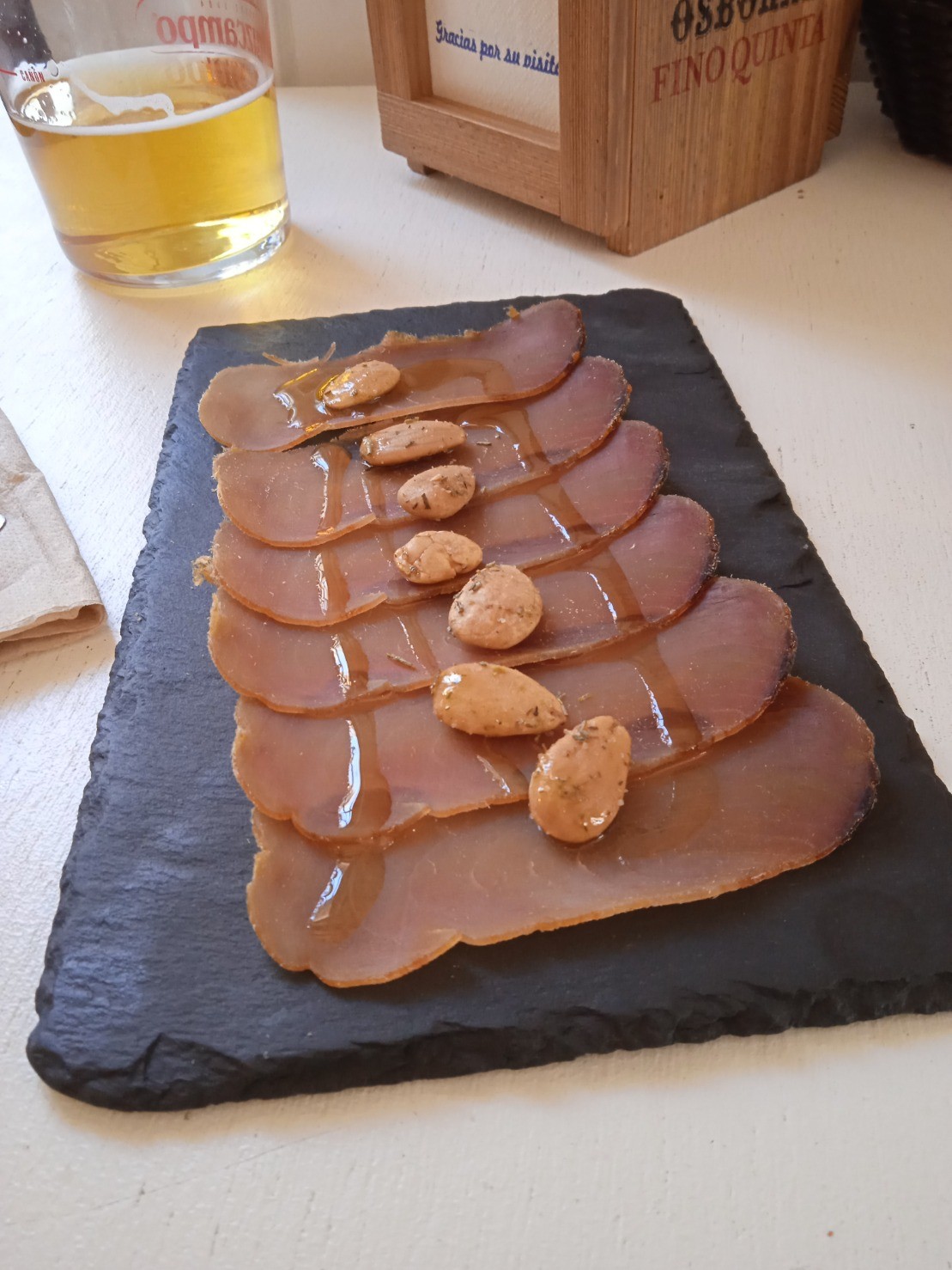 Que cabrones degustaciónPalomino 15°Pedro Ximénez 18°Jamón, Queso,PicosCalor mezcla brutal 🤣🤣🤣