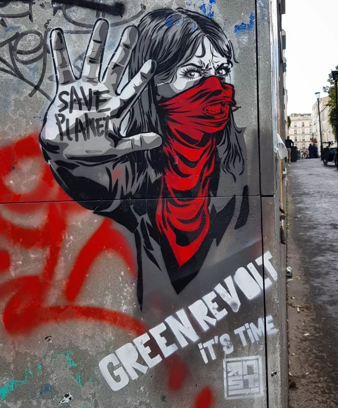🔴Artist: #RNSTart - in City: #Paris France 🇫🇷 - Title: "Green Revolt" - (📷 via mindinrewind) - #streetart #mastoart #art #stencilart