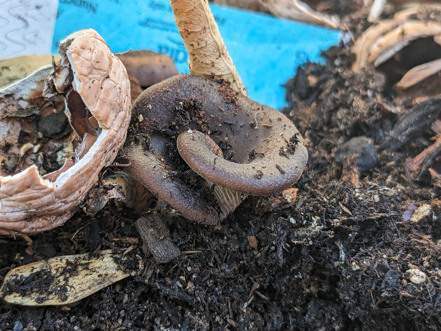 Found some neat mushrooms growing in our potted kumquat tree. Anybody have any idea what kind of mushroom this is?