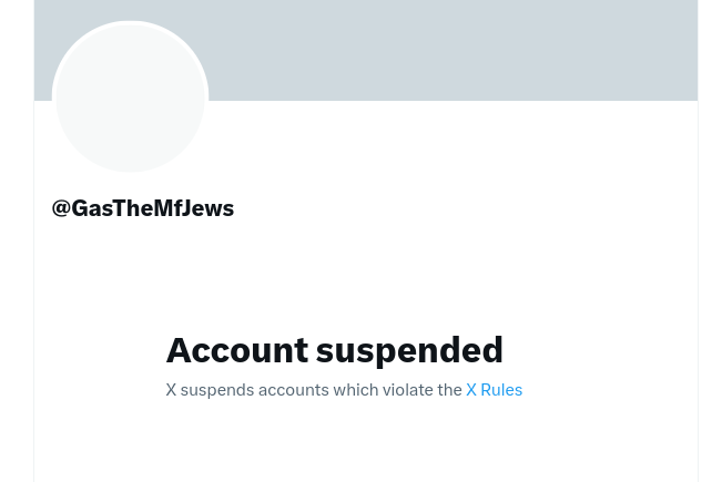 @mjk_4mjk@mastodon.ie @tchambers the account https://twitter.com/GasTheMfJews was suspended.