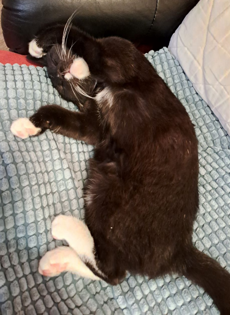 I specifically wanted a black and white kitty. Heck, I wanted two of them! So I looked around and found a family offering a few kittens including two with this lovely pattern, and called them. Made an appointment for the next day. Went there. And came back with those 2. :blobcatlove:
