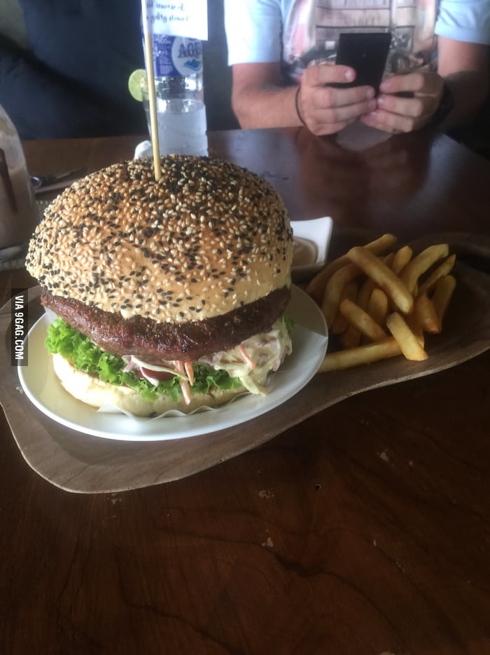 @a7 For reference here is what a 500 gram burger looks like on a bun. The bun is certainly not on the small size for a burger bun, but not comically huge either.