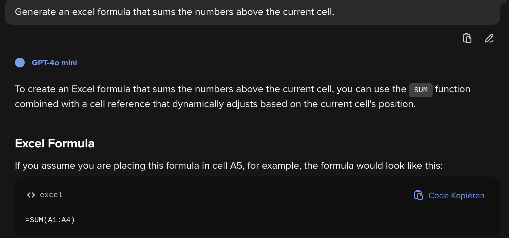 @knud @nicolaromano @Kiloku @eb I agree that LLMs do not have an actual understanding of what a function is, and that they are ill-suited to perform calculations. However, for instance GPT-4o mini can assemble an Excel formula just fine. This is what I mean:
