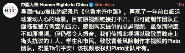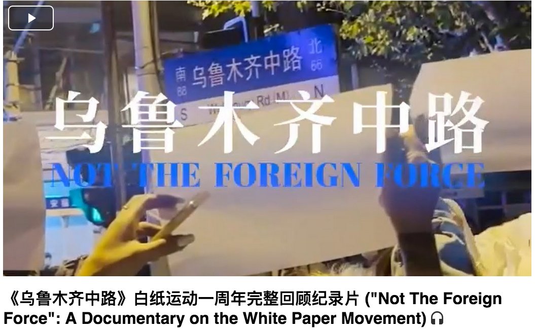 导演 Plato 推出了白纸运动一周年完整回顾纪录片《乌鲁木齐中路》。