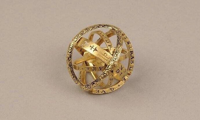 德国16世纪的一枚戒指,合扣上是精巧的戒指,展开就是天文球,指尖藏着宇宙,太浪漫了 ❞