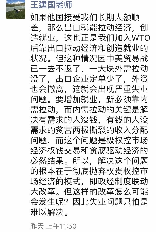 北大光华管理学院王建国老师对当下贸易战的部分解读。 https://twitter.com/melissa9981/status/1128349505215188994