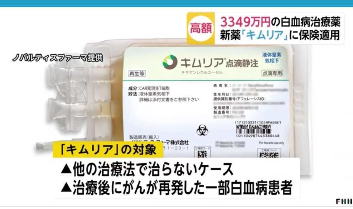 日本厚生省宣布白血病CAR-T疗法新药キムリア适用于医疗保险