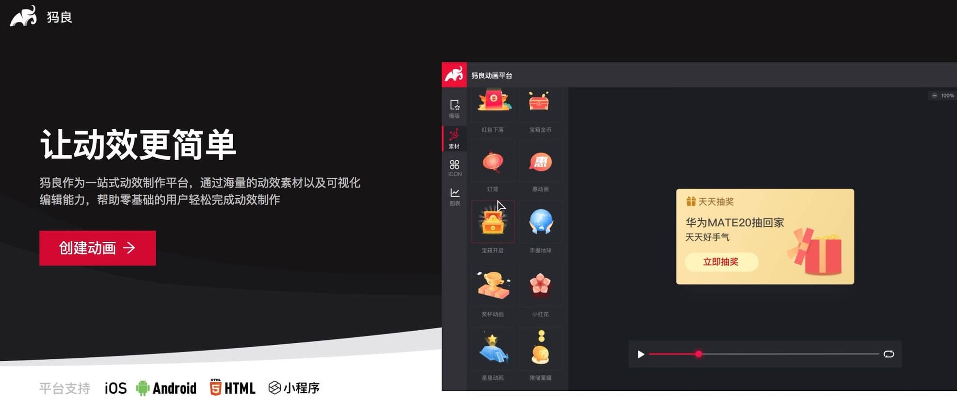 蚂蚁金服推出犸良,官方介绍:一站式动效制作平台,通过海量的动效素材以及可视化编辑能力,帮助零基础的用户轻松完成动效制作。<br><br>体验了下,很适合电商运营设计,很多挺不错的现成模板直接使用,但模板自定义程度还比较低,可以利用 Lottie 直接导出 JSON 文件。链接:链接:<a href="design.alipay.com/emotion" target="_blank" rel="noopener">design.alipay.com/emotion</a> <a href="" target="_blank" rel="noopener"></a> <a href="twitter.com/modaotool/status/1" target="_blank" rel="noopener">twitter.com/modaotool/status/1</a><br><br>