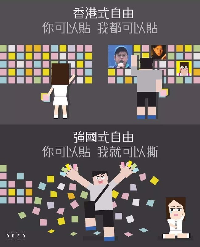 HK-style freedom: I can post, you can post<br>Powerful Country-style freedom: you can post, I can tear it down! <a href="" target="_blank" rel="noopener"></a> <a href="twitter.com/HighlandPaddyHK/st" target="_blank" rel="noopener">twitter.com/HighlandPaddyHK/st</a><br><br>