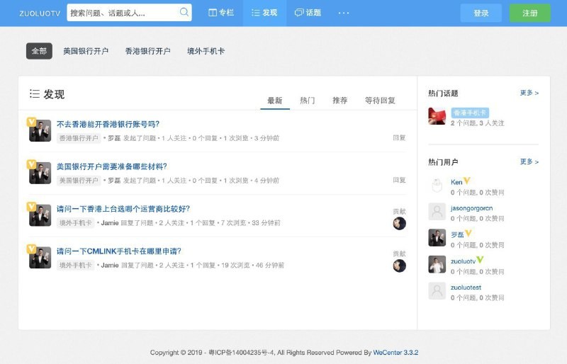 各位朋友晚上好,每天都有大量朋友,要咨询:<br>1.香港银行开户<br>2.美国银行开户<br>3.美国手机卡<br>4.香港手机卡<br>之类的话题,为了沉淀知识、方便分享给后续的朋友。我新开了一个问答网站。大家有问题,直接去这里提问吧。 <br>地址:<a href="ask.zuoluo.tv/" target="_blank" rel="noopener">ask.zuoluo.tv/</a><br><br>