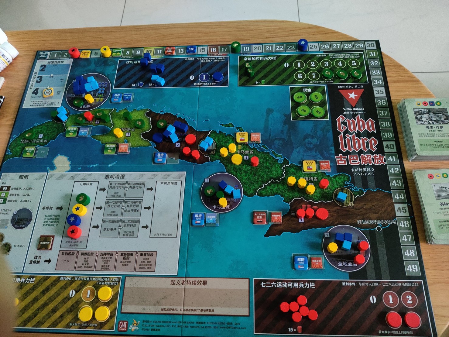COIN 果然名不虚传,整个系统互相牵扯,在不对等的基础上又保持平衡。不过信息太多了,兵力,人口,资源,基地,支持度,控制,现金,环环相扣,一个人 solo 玩不动了 <a href="" target="_blank" rel="noopener"></a> <a href="twitter.com/Sunng/status/11525" target="_blank" rel="noopener">twitter.com/Sunng/status/11525</a><br><br>