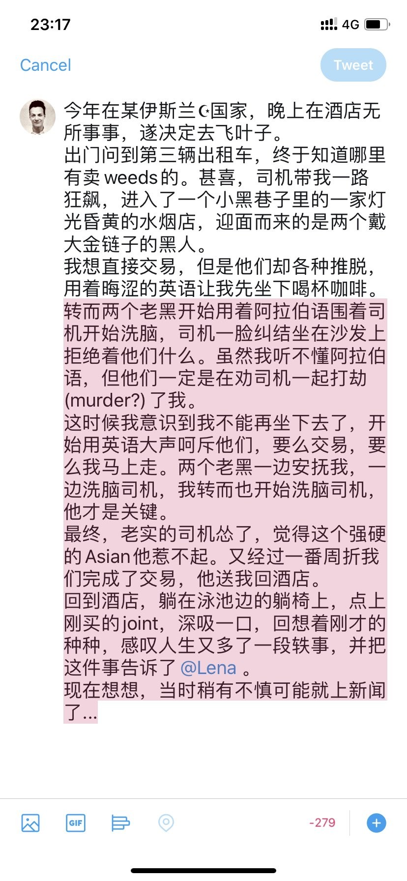 今年在某伊斯兰☪︎国家,晚上在酒店无所事事,遂决定去飞叶子。