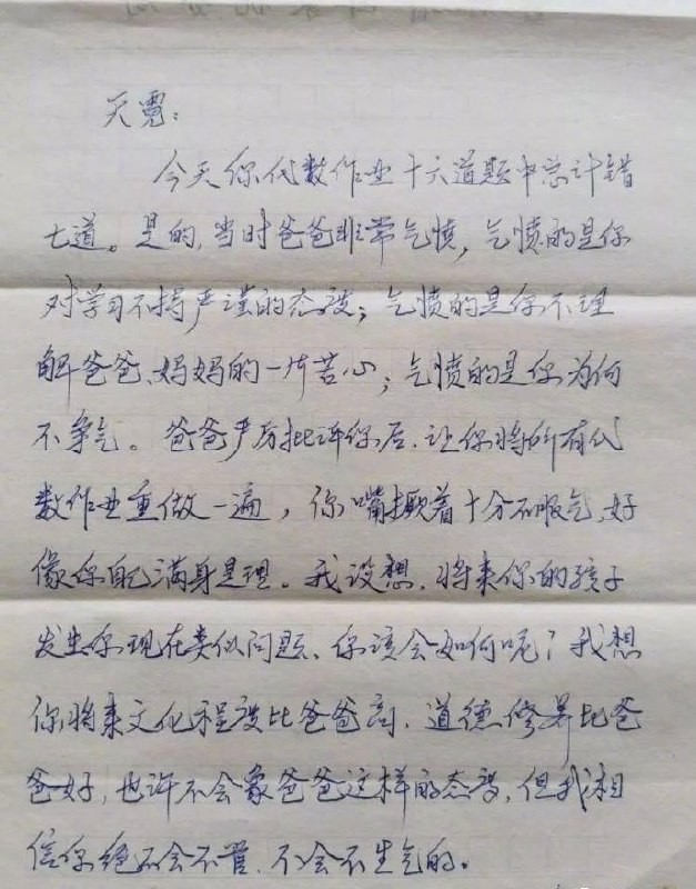 近日,上海一位妈妈辅导女儿作业逐渐崩溃,外婆却幽幽地说“哈哈哈你也有今天!”原来23年前,外公外婆给妈妈辅导功课时就写下家书并留下当时的作业卷:我们留下这封短信,#20年以后看你如何教子#?[doge]网友:苍天饶过谁?
