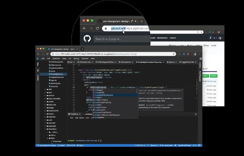 在线IDE,你只需要在任何github项目链接前面加上 <code>gitpod.io/#</code>,就可以打开在线编辑器。