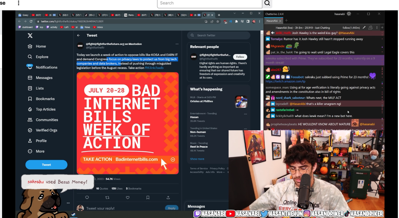 Hasan on right now talking about #KOSA and why it's a terrible bill that expands censorship and surveillance
