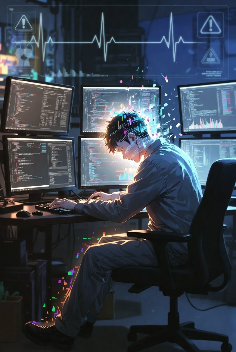 This is not a local issue (eyes/stress). It’s a systemic decompensation driven by chronic sleep deprivation.